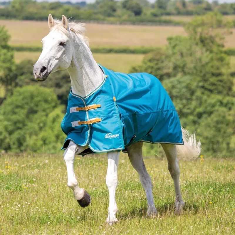 Shires Highlander Original Lite Turnout RugFor comfort during rainy warmer days, the Highlander Lite turnout rug keeps the horse dry without restricting movement. Key features: deep shoulder gussets, fully lined, twin buckle chest fastenings, adjustable cross surcingles, adjustable fillet strap, integrated leg strap loops, tail flap.