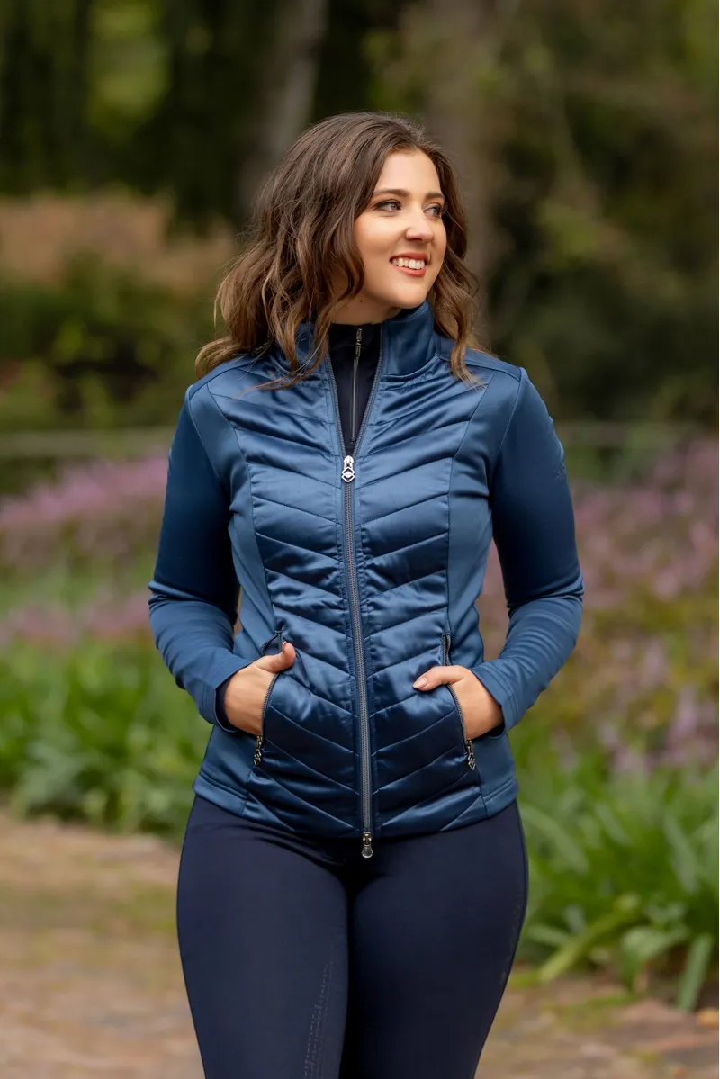 Add a touch of style to your wardrobe with the elegant LeMieux Dynamique Jacket. Perfect for those chillier days, the Dynamique Jacket has a super soft lining and padded chevron satin panelling. The shaped fit creates a flattering outline while the detailing of the front zipped pockets, full zip closure and LeMieux badge give a refined finish.