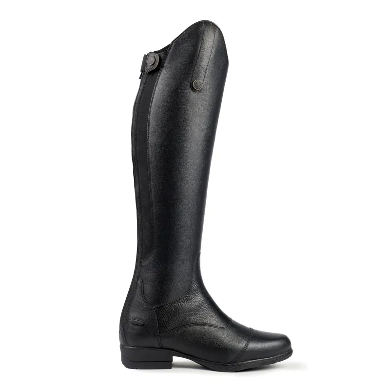 A classy milled leather outer panel is combined with a nubuck inner calf for elegant looks with enduring appeal. The Carla long riding boot design is based on the popular Albina boots but with a sleeker front section. Full length stretch inserts achieve a neat leg fit and legs are kept comfortable thanks to the moisture control fabric linings. Supportive insoles and shock absorbing soles ensure feet stay energised in the stirrup. Key features: Milled leather. WickAway stay dry linings. Soft piqued leather inner trims. Nubuck calf grips. Dressage cut tops. UltraFit leg panels. YKK zips. Upper leather zip security tabs. Non-slip spur rests. ActiveFlex insoles with Impact Support System. Moretta shock absorbing rubber soles. Steel shanks.