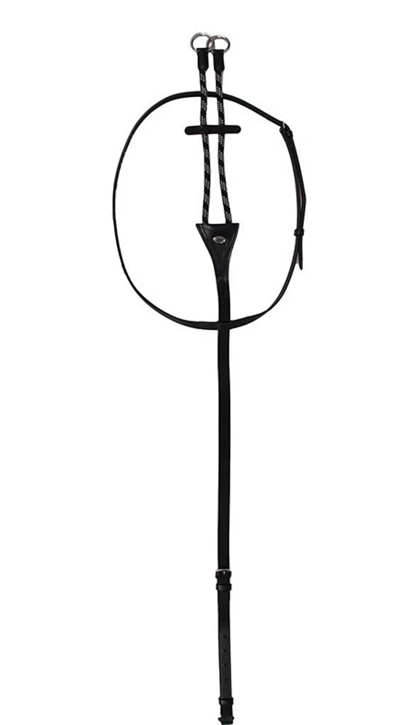 Leather running martingale finished with two-tone cord. Leather stop between