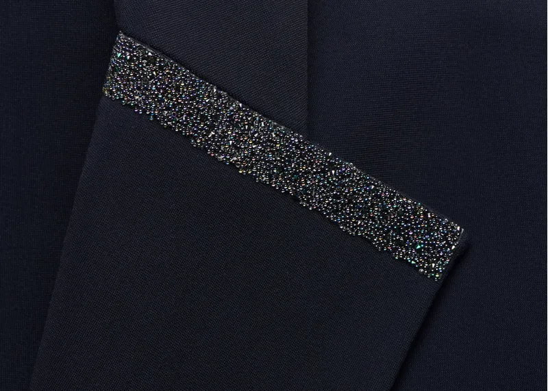 Finished with a Swarovski Crystal Blazon on the sleeve and Crystal Fabric elements on the collar and back.