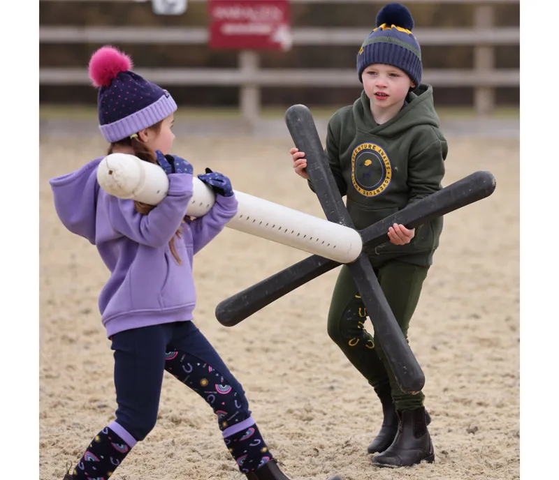 Offering wearable comfort, the Tikaboo hoodie is perfect for throwing on before heading to the yard. The busy pony rider will find the breathable cotton mix sweatshirt fabric, with its brushed inner, soft and easy to wear. Children love the cosy hood and kangaroo pocket and if it ever gets a day off the hoodie is easy to wash and dry. Further detail include a roomy fit, ribbed cuffs and hem, and fun Tikaboo prints.