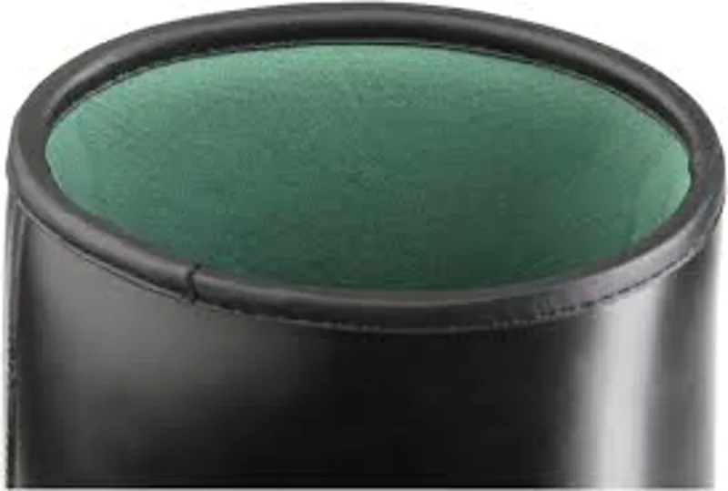 Black, leather look PVC with green synthetic lining, waterproof.